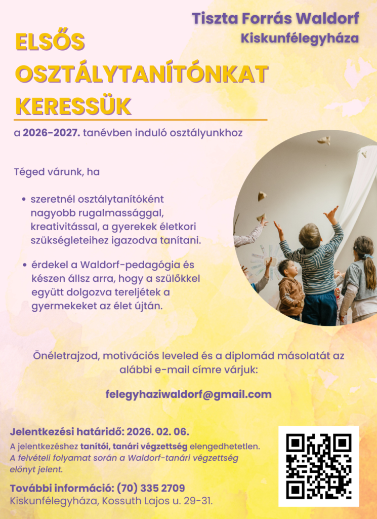 Minden felajánlás – legyen az anyagi vagy segítő szándék – hozzájárul ahhoz, hogy a gyermekek a Waldorf-szellemiségben, szeretetteljes és inspiráló környezetben fejlődhessenek.
